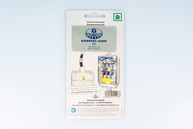 Anwendung: Bitte entfernen Sie die Schutzfolie von Ihrem Gabriel-Chip und kleben Sie diesen auf die Sondersicherung oder auf das Stromeingangskabel.